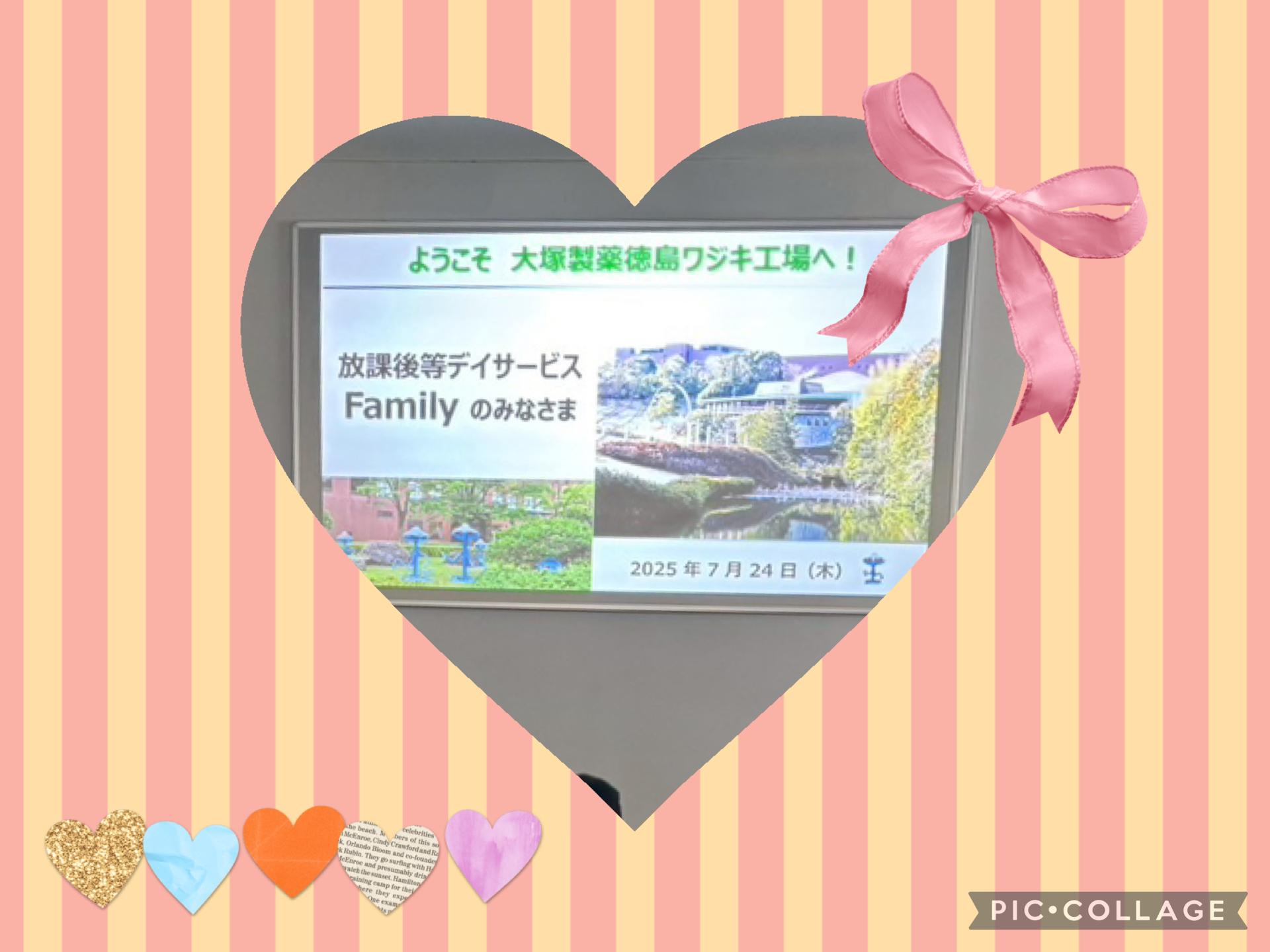 こんにちは 児童発達支援・放課後等デイサービスFamilyです 夏休みに入り、子どもたちの元気な声が 朝からFamilyに響いています♡ 今回は7月の様子をお伝えします(╹◡╹) ⭐︎室内活動⭐︎ ![]() 変わらず人気の腕相撲大会⭐︎ 最近では、自分達でトーナメント表を作り、 王者を目指して戦っています(≧∀≦) 9マス鬼ごっこも人気で、 1日に何回も 「鬼ごっこしよ〜!」と 誘ってくれます♡ ⭐︎ビーズ運び⭐︎ ![]() お箸を使ってビーズ運びをしました 慎重に正確に、、 集中して取り組んでいました╰(*´︶`*)╯ ⭐︎氷遊び⭐︎ ![]() 暑い日には氷遊びをしました 水よりも冷たい氷に大はしゃぎ! 氷でキンキンに冷えた手で 職員やお友達に触り、 「涼しくなった?」と気遣ってくれる 優しい一面を見せてくれました⭐︎ ⭐︎恐竜フェスティバル⭐︎ ![]() ![]() ![]() ![]() 勝浦の恐竜フェスティバルに行ってきました♪ 小さな恐竜の絵に色を塗り、 可愛い缶バッチを作りました♡ ⭐︎工場見学⭐︎ ![]() ![]() 大塚製薬徳島ワジキ工場さんに 工場見学に行かせていただきました〜 カロリーメイトが製造されている所を見たり、 お話を聞いて、子どもたちは興味津々! 貴重な体験をする事が出来ました ありがとうございました♪ ⭐︎体育館⭐︎ ![]() ![]() ![]() ![]() ![]() ドッヂボールや卓球、リレーなど 沢山運動しました♪ 「また行きた〜い!」との事で、 8月にまたお邪魔させていただきます╰(*´︶`*)╯ 夏休みはまだまだ始まったばかり! 8月もプール、お出かけ、お楽しみ会! たくさんの行事で、 子ども達と一緒に職員も 楽しみながら過ごしていきたいと思います♡ |
